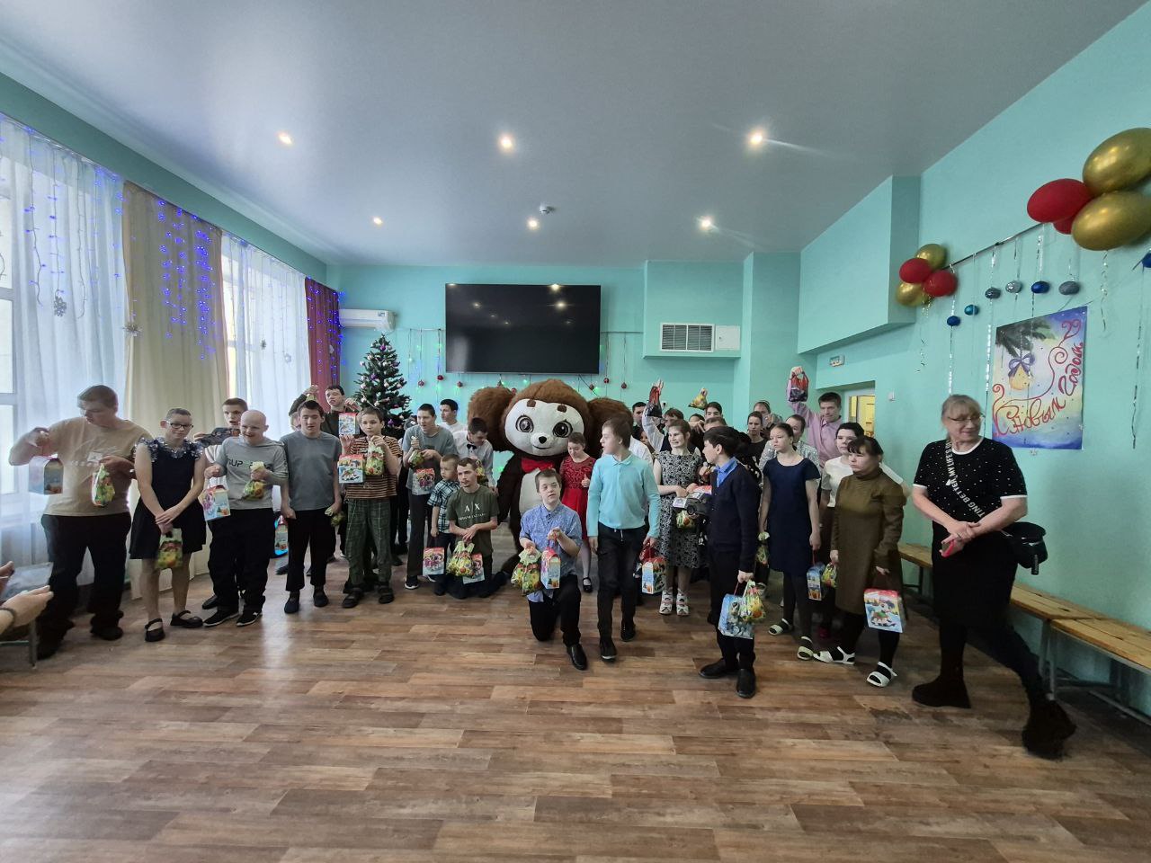 После веселья со сказочным героем каждый ребенок получил подарок - рождественский пряник и фрукты.