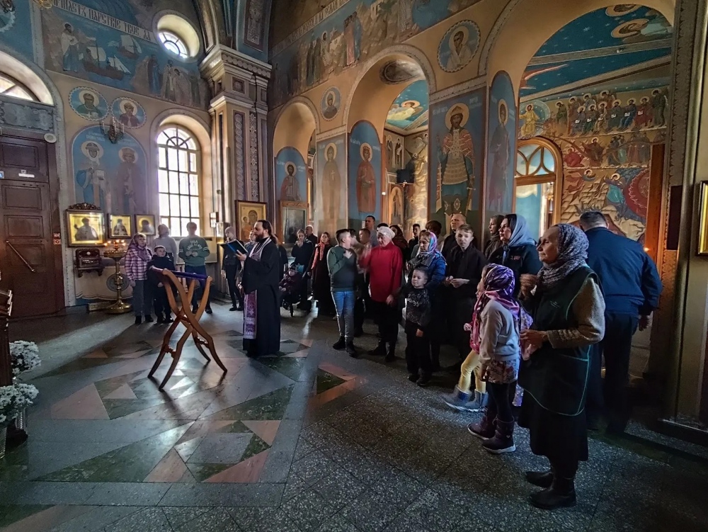 Встреча началась с краткого молебна, который совершил настоятель храма и руководитель Миссионерского отдела Хабаровской епархии иеромонах Софроний (Медведенко). После молитвы отец Софроний провел гостей по храму. Его рассказ не был сухим перечислением архитектурных фактов — он превратился в живую, увлекательную беседу. Батюшка рассказывал об устройстве храма, о значимых иконах и фресках, о том, как история церкви неразрывно переплетается с историей Хабаровска. Время от времени он задавал вопросы, и гости с видимым удовольствием включались в диалог. Для многих родителей этот разговор стал долгожданной возможностью.