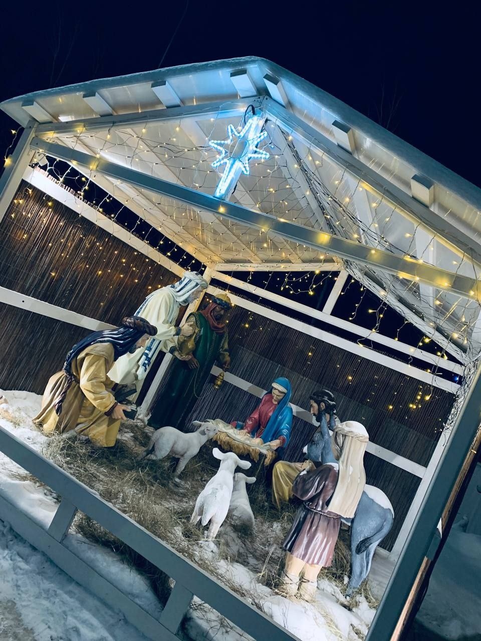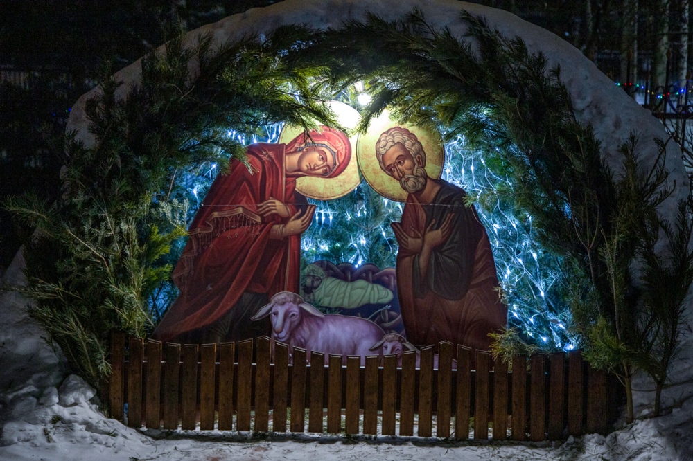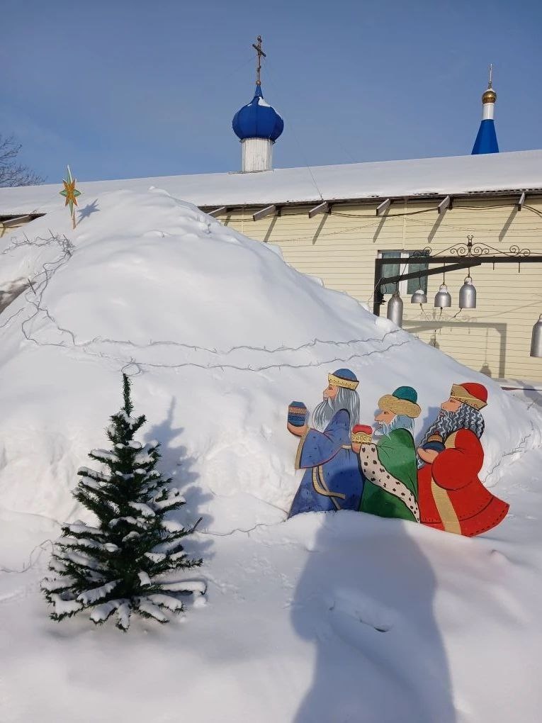 На подворье Петропавловского женского монастыря появился необыкновенной красоты вертеп, который радует прихожан и гостей необычными фигурами волхвов и других участников события Рождества Христова, выполненными в человеческий рост.