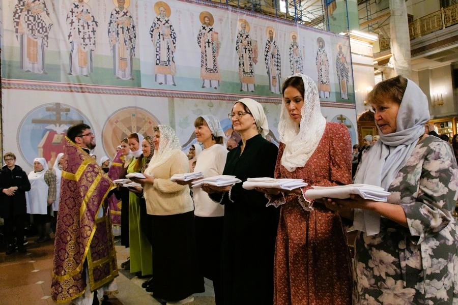 В этот день посвящение приняли восемь женщин. Им вручили символ их нового служения — традиционные плат и фартук сестры милосердия. Кроме того, 29 выпускниц интенсивного курса по уходу за ранеными воинами получили сертификаты об окончании подготовки. Теперь эти женщины будут нести добровольческую вахту милосердия в военном госпитале и больницах, помогая бойцам восстанавливаться не только телом, но и духом.