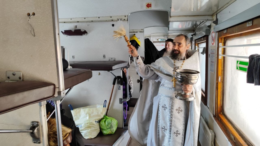 После богослужения отец Андрей, настоятель храма в честь иконы Божией Матери «Скоропослушница», окропил святой водой ночлежку для бездомных, обойдя утепленные вагоны, а также общежития проектов «Надежда» и «Не одна», гуманитарный склад и другие помещения организации, благословил сотрудников и подопечных организации и поздравил всех с одним из главных православных праздников – Богоявлением.