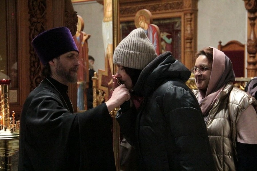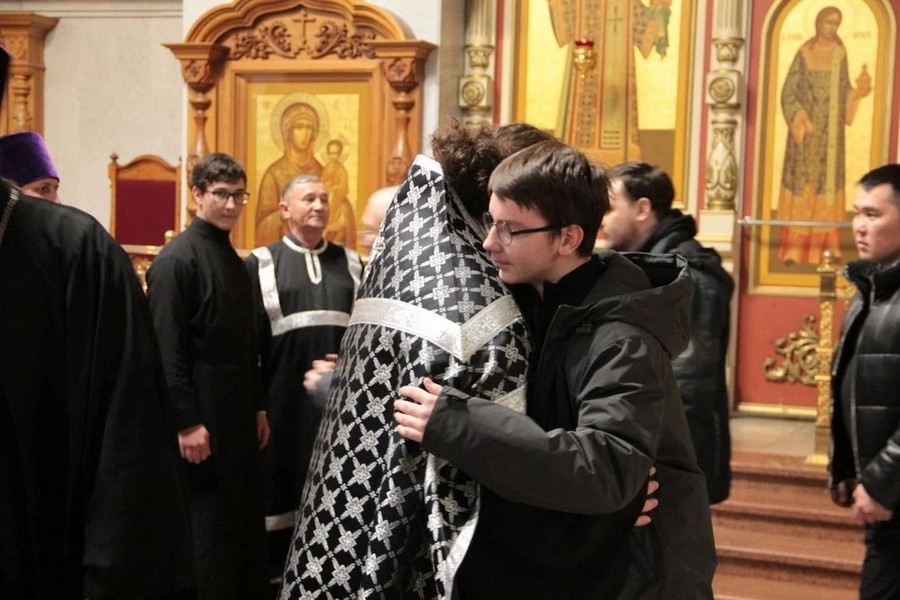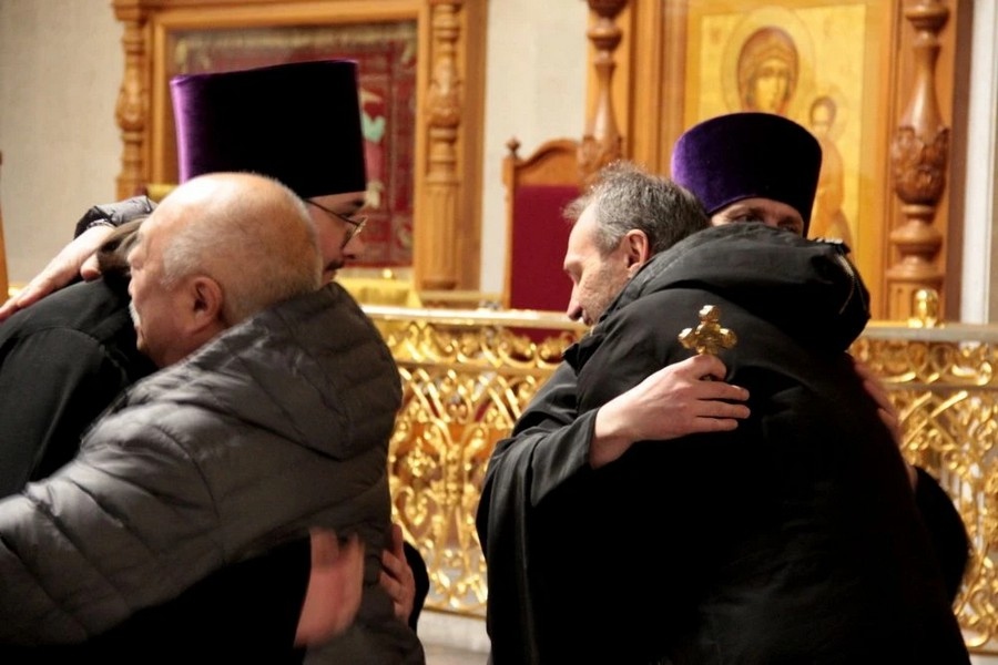 Затем все присутствующие в храме священники испросили друг у друга прощения. Миряне, подходя поочередно ко кресту, также испросили прощения у правящего архиерея, церковного причта и один у другого.