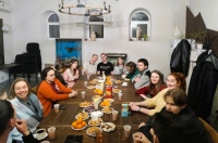 Встреча прошла в православном кафе «2 Рыбы» и собрало членов нескольких приходских молодежных объединений города. Участники вечера погрузились в атмосферу праздника, изучив историю и значение события Рождества Христова, а после пели традиционные колядки и просто хорошие песни, настраивающие всех собравшихся на радостный лад.