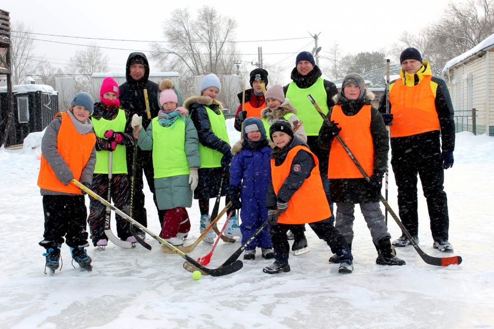 Просторная территория базы порадовала ребятню множеством развлечений: высокой ледяной горкой, залитым чистым катком и снегоходами. Вооружившись клюшками, надев коньки и распределив манишки, дети вместе с родителями поделились на команды и устроили весёлый хоккейный матч, в котором активно участвовали не только отцы, но даже мамы и бабушки. Также для старшего поколения отдельной радостью стала возможность душевно пообщаться за общим столом и спеть под гитару множество любимых песен.