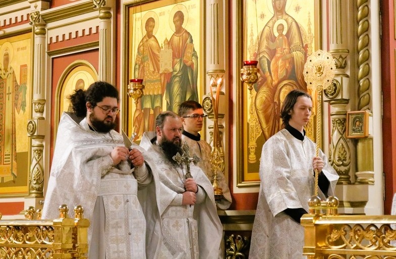 Его Высокопреосвященству сослужили: секретарь Хабаровской епархии иеромонах Николай (Белозеров), настоятель Спасо-Преображенского кафедрального собора протоиерей Георгий Сивков, духовенство собора. Богослужебные песнопения исполнил хор Спасо-Преображенского кафедрального собора.