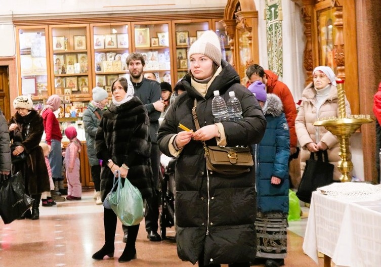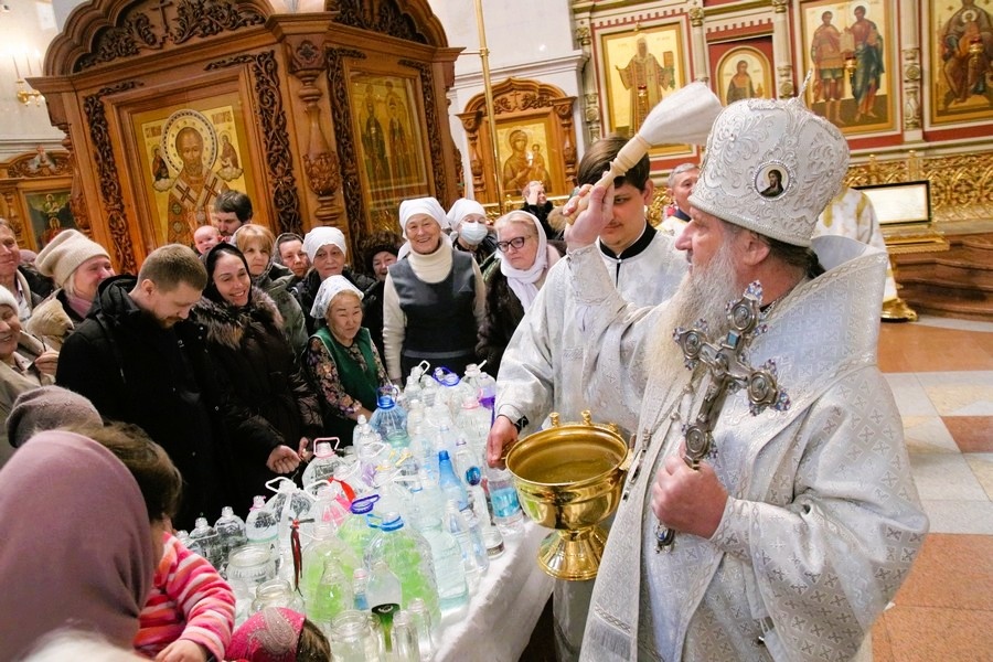 После праздничной службы продолжилась раздача Крещенской воды, за которой в эти дни в храмы приходят тысячи хабаровчан.