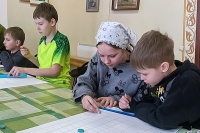 В большом классе воскресной школы кипела работа, каждый был занят важным делом – кто-то рисовал, кто-то приклеивал картинки на свой календарный лист, взрослые помогали малышам, дети давали советы друг другу, в общем, царила теплая и душевная атмосфера.